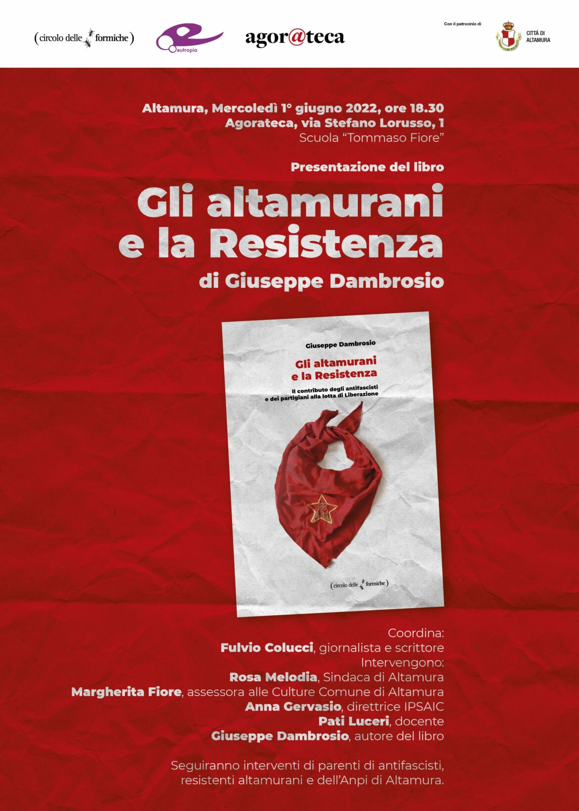 Attraverso un lavoro di ricerca, per la prima volta, si traccia un quadro preciso degli altamurani che militarono nelle diverse formazioni partigiane in Italia e in altre nazioni europee (Jugoslavia, Grecia, Albania). Fondamentale è “la resistenza senz’armi” degli IMI (Internati Militari italiani): migliaia di soldati e di ufficiali del Sud vengono internati nei campi di concentramento tedeschi in Germania o in Polonia rifiutandosi di aderire all’esercito della Repubblica sociale italiana. L’elenco è corredato da schede anagrafiche desunte dall’Archivio di Stato Centrale che danno informazioni utili a chi voglia procedere con ulteriori approfondimenti. I risultati della ricerca smentiscono un luogo comune, protrattosi nel tempo, sull’esiguo numero di partigianimeridionaliche militano in prima fila sulle Alpi, sugli Appennini e con incarichi di primo piano. È indispensabile tutelarne la memoria, i parenti sono i primi custodi di questo immenso patrimonio!