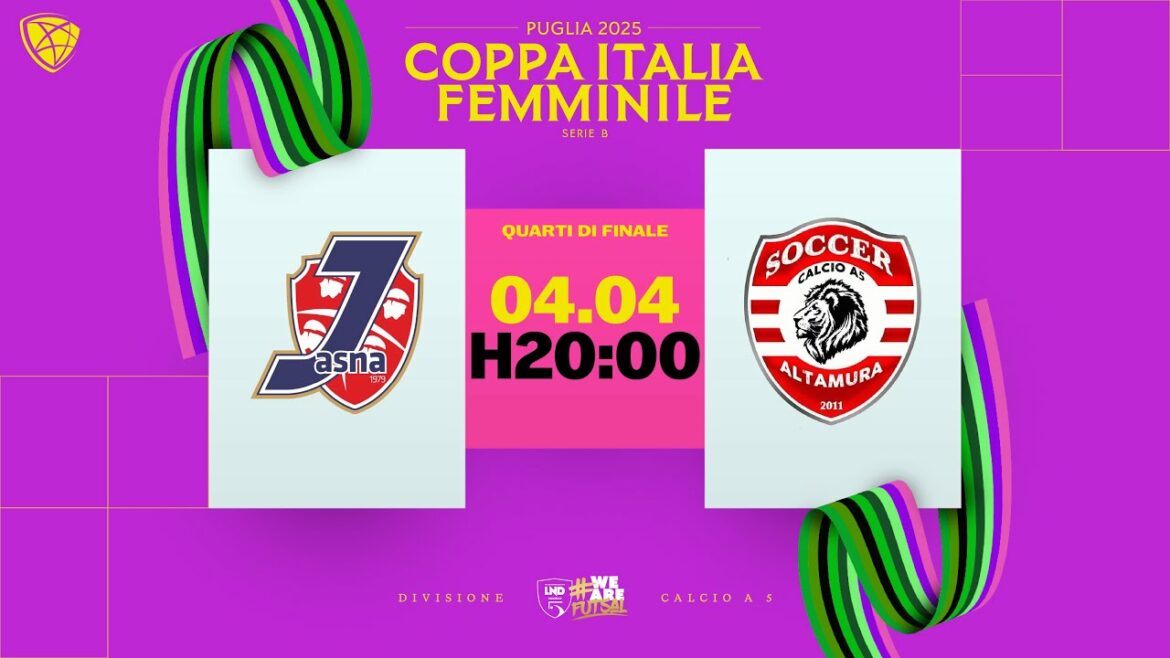 Mancano solo un giorno all’inizio dell’avventura della Soccer Altamura nelle Final Eight di Coppa Italia di Serie B femminile. Per la squadra biancorossa sarà la prima volta e come ogni prima volta sarà un’esperienza indimenticabile e, allo stesso tempo, avvincente.La squadra guidata da mister Raffaele Colaianni arriva a questo appuntamento dopo aver chiuso la stagione regolare di campionato con una vittoria ed ha tutte le intenzioni di fare più strada possibile in questa competizione che è uno degli obiettivi dichiarati ad inizio stagione dalla dirigenza. Il tecnico barese, comunque, non si nasconde: “Arriviamo a questo appuntamento carichi. La squadra sta bene e abbiamo chiuso la regular season con una vittoria che sia il miglior modo per preparare questo appuntamento.” Il sorteggio, per questo quarto di finale, ha decretato come avversaria della Soccer, la squadra sarda dello Jasnagora che condivide con quella altamurana sia la posizione di classifica in campionato, seconda, che il numero di punti, 39. “Affronteremo un’ottima squadra – ha concluso mister Colaianni – composta da elementi di tutto rispetto, ma noi proveremo a metterla in difficoltà.”L’appuntamento, dunque, è fissato per venerdì 4 aprile alle ore 20,00, quando, al Palazzetto dello Sport di Fasano, andrà in scena l’ultimo quarto di finale tra Jasnagora e Soccer Altamura. La partita sarà trasmessa in diretta, così come tutto l’evento, sul canale Youtube della Divisione Calcio a 5. La squadra vincente sabato in semifinale affronterà la vincente tra Team Scaletta e Atletico Chiaravalle mentre la finale è in programma domenica alle ore 17,00.