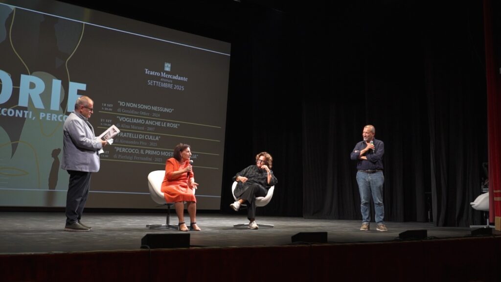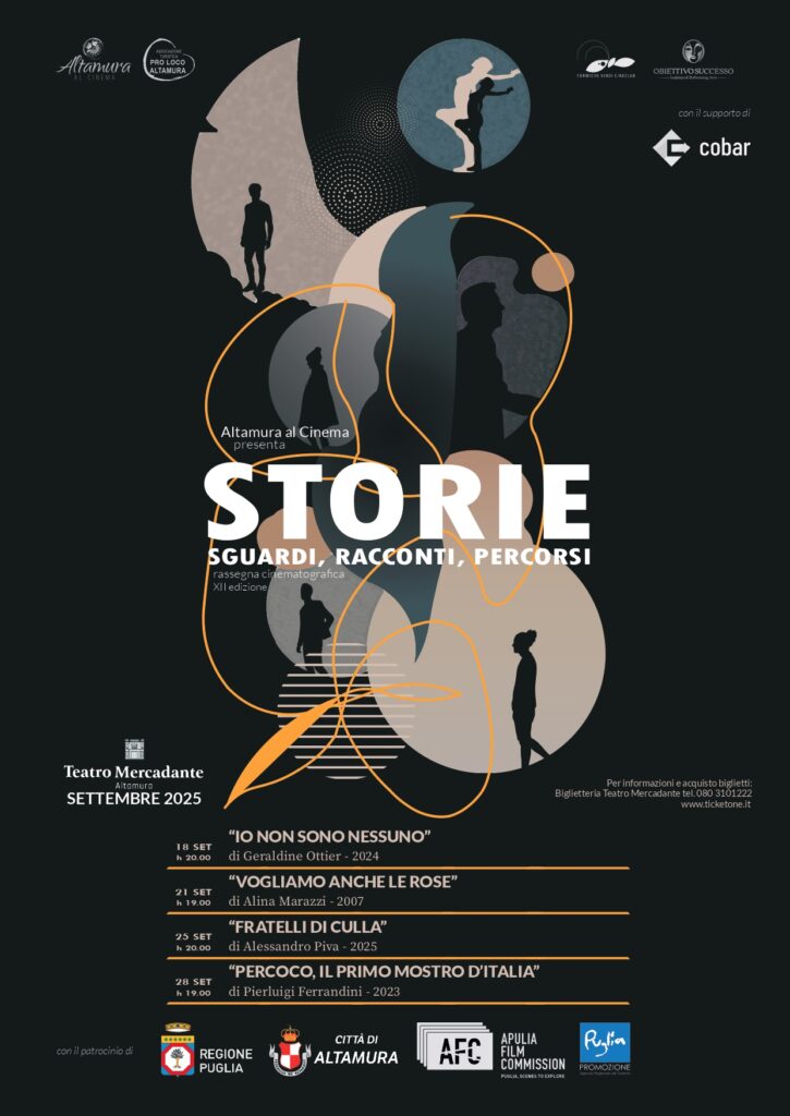 Il ritorno del cinema al Mercadante di Altamura dopo tanti anni è stato un evento per la città e per chi ha frequentato lo storico teatro nelle stagioni d’oro della settima arte: i grandi film popolari e le rassegne d’autore sono nel cuore e nei ricordi di molti cittadini e appassionati. La rassegna, alla 12° edizione, è stata organizzata dal gruppo informale Altamura al Cinema, composto dalla Pro Loco e dalle associazioni Obiettivo Successo e Cineclub Formiche Verdi. Quest’anno il tema è “Storie: sguardi, racconti, percorsi”, da una idea di Piero Crivelli che cura anche il coordinamento e l’organizzazione. Ma “Storie” è qualcosa di più di una rassegna. Filo rosso di questa edizione l’evoluzione della società e del costume italiani del secondo dopoguerra. Storie ed esperienze personali che si collegano a sentimenti e percorsi collettivi. Per questo le proiezioni vengono accompagnate da altrettanti talk di approfondimento e confronto con registi, attori, autori, esperti. “Questa rassegna cinematografica – spiega Crivelli – nasce dal desiderio di esplorare il potere delle storie e quei fili invisibili che collegano le esperienze personali al sentimento collettivo. Quattro film che mettono al centro personaggi diversi per vissuto, contesto e percorso ma uniti dalla capacità di raccontarsi e di lasciare un segno. Attraverso il linguaggio del cinema, con i suoi vari generi (finzione, trasposizione letteraria, documentario ecc.) queste storie diventano specchi, finestre e strumenti di confronto, capaci di emozionare, far riflettere e “accendere” domande. Perché raccontare storie significa, in fondo, cercare di capire meglio il mondo e noi stessi”.