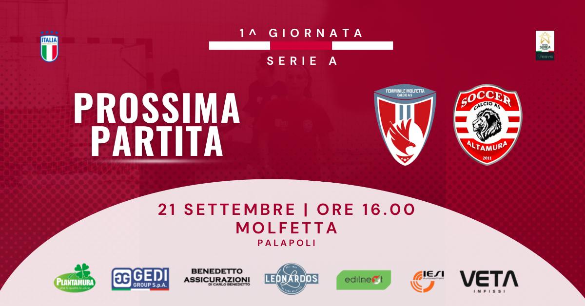 L’emozione è di quelle che si respirano a pieni polmoni. Dopo anni di crescita, sacrifici e passione, il Soccer Altamura è pronta per scrivere una nuova pagina della sua storia: il debutto ufficiale nel massimo campionato italiano di Serie A femminile di futsal.La squadra murgiana scenderà farà il suo debutto domenica pomeriggio in casa della Femminile Molfetta: si inizia, dunque, subito con un derby per una partita che promette spettacolo. A guidare la squadra sarà mister Vincenzo Tassielli, tornato sulla panchina altamurana dopo un anno di assenza: “Sicuramente sarà un’emozione fortissima – ha dichiarato il tecnico murgiano – e far parte di uno staff così importante è per me motivo di orgoglio. Certo essere catapultati in un contesto del genere non è stato facile perché è un mondo a parte: anche il rapporto con le giocatrici è diverso. Io cercherò di fare del mio meglio.” Sarà doppiamente emozionato anche Mauro Garaleta, visti i suoi trascorsi a Molfetta: “Tornare dopo due anni sarà emozionante – ha esordito il preparatore atletico biancorosso -, a Molfetta ho trascorso molti anni e conservo ottimi ricordi. Ho comunque un buon rapporto con molti della società perché le strade possono dividersi ma il rispetto resta.” A proposito del lavoro fatto dalla squadra ha aggiunto: “Sono abbastanza soddisfatto del lavoro fatto dalla squadra anche perché abbiamo avuto modo di vedere i frutti proprio sul campo, con due amichevoli, una importante e una con una squadra di categoria inferiore. Le risposte che hanno dato le ragazze sono state importanti. Inoltre abbiamo fatto test di valutazione che ci hanno detto che siamo ad un ottimo punto, anche se comunque c’è ancora da lavorare. Per quanto riguarda la partita – ha concluso – penso che sia sbagliato sottovalutare il Molfetta, guai a farlo, perché comunque, nonostante sia una squadra giovane, ha dimostrato in più occasioni di essere bella tosta e arcigna. Con i nuovi innesti ha sicuramente alzato il tasso tecnico, hanno tanta gamba, quindi corrono parecchio e poi è un derby. Non scenderemo in campo per giocarcela a viso aperto e penso che ci divertiremo.”Adesso non resta che fissare l’appuntamento: la partita tra Femminile Molfetta e Soccer Altamura, valida per la 1^ giornata di Serie A femminile, andrà in scena sul parquet del PalaPoli di Molfetta con fischio d’inizio alle ore 16:00.