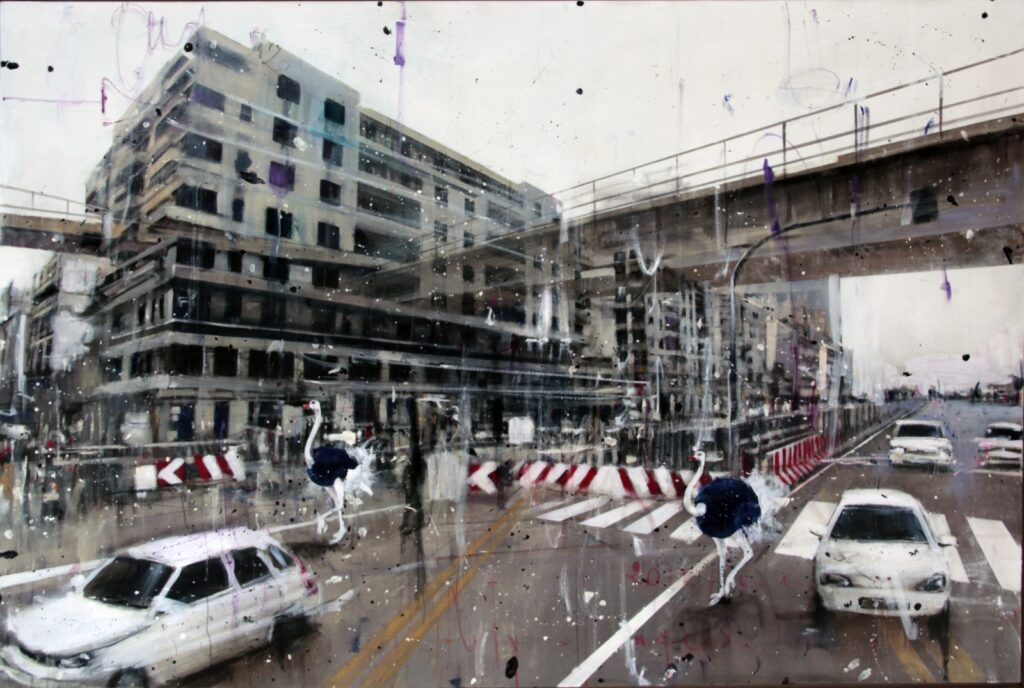Il simbolo è la chiave di accesso a questo universo visivo: figure “fuori luogo”, presenze stranianti, animali monumentali e personaggi della storia dell’arte convivono in composizioni che rivelano una realtà altra, nascosta sotto la superficie del quotidiano. Le opere della serie Misplaced, presentate in mostra in formati importanti, confermano la capacità di Accardi di trasformare l’immagine in una riflessione sul disorientamento contemporaneo, sull’identità e sulla perdita di coordinate culturali. Accanto alla pittura, la mostra accoglie anche una selezione di sculture. Dal 2015, infatti, il mondo Misplaced prende corpo e volume: struzzi, rinoceronti e presenze ibride realizzati in metallo laccato, cromo e PVC abitano lo spazio espositivo imponendo un silenzio carico di significati. Sono opere che osservano e mettono in discussione, che coinvolgono lo spettatore in una relazione diretta e destabilizzante. La scultura diventa così una naturale estensione della ricerca pittorica, un passaggio ulteriore verso una dimensione immersiva e concettuale ancora più complessa.